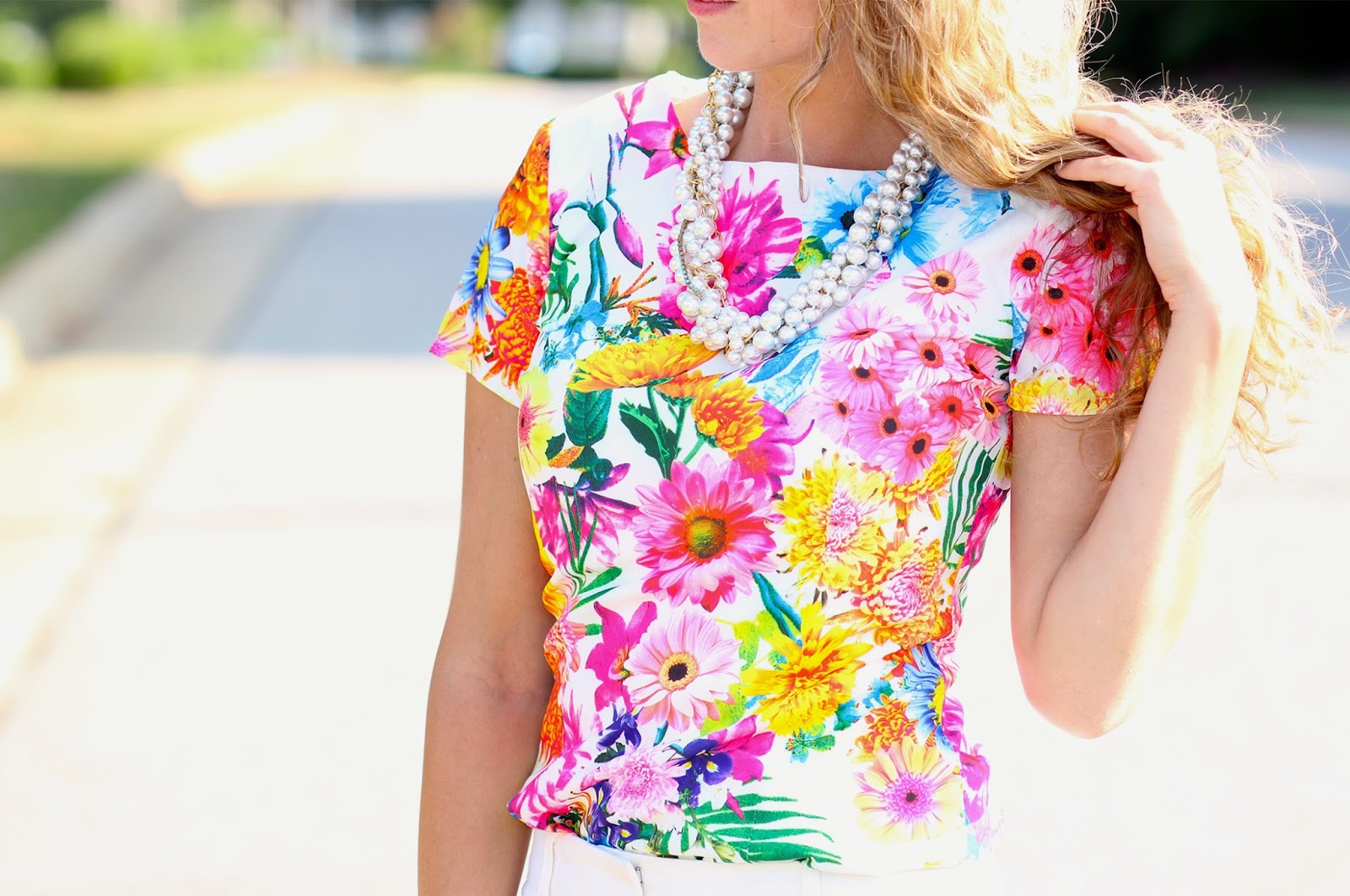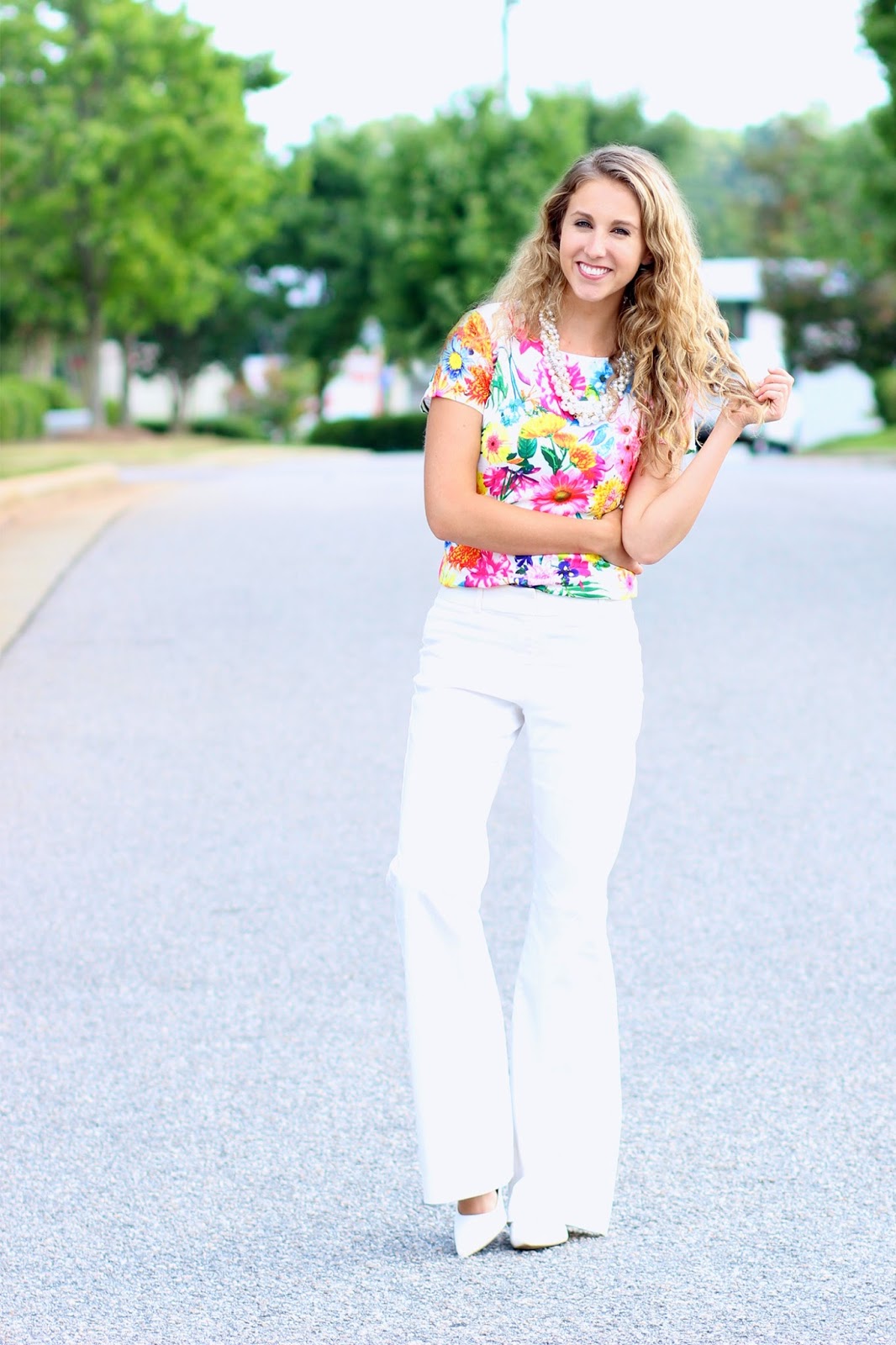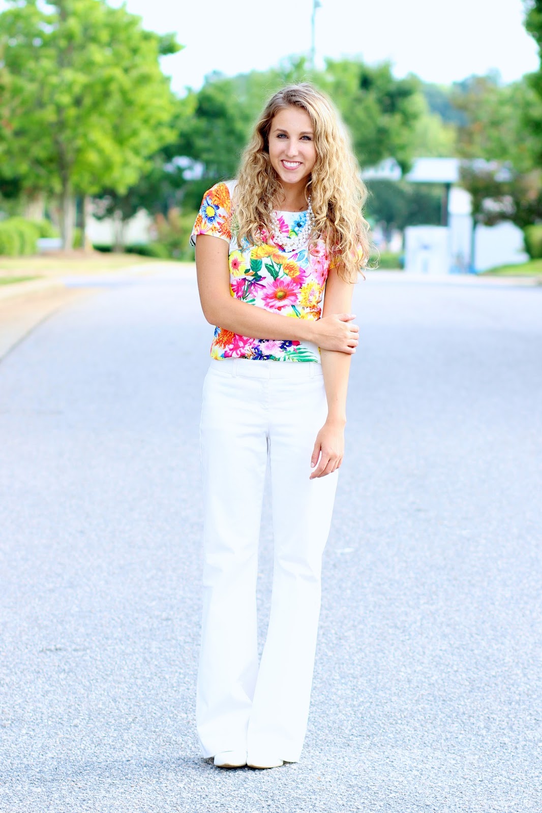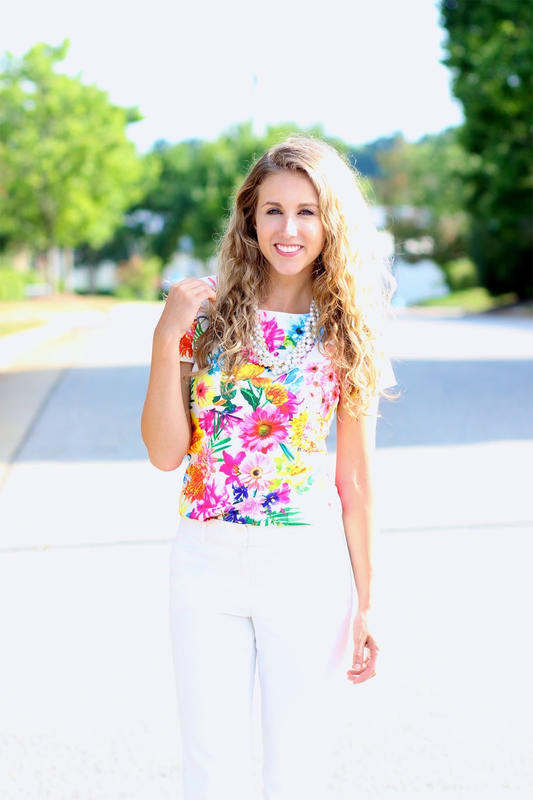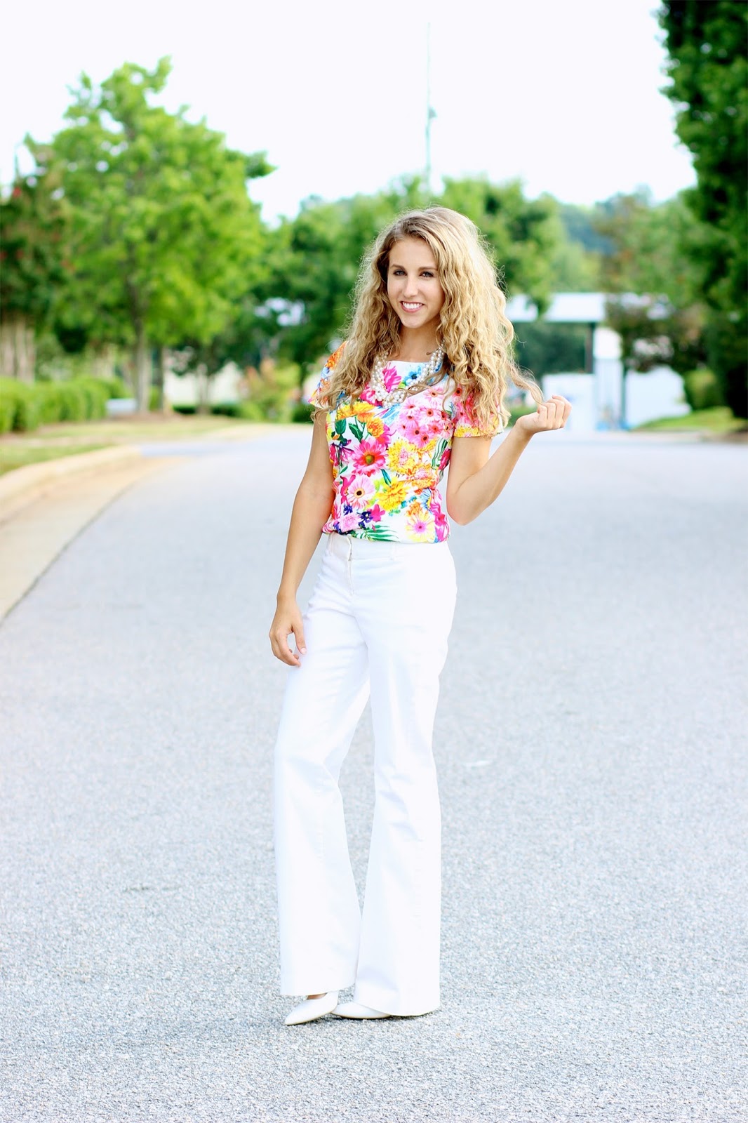 Oh, I love! Those white pants look so lovely with the bright, floral top! Too cute!!!