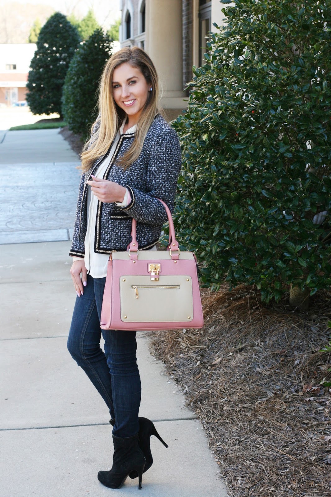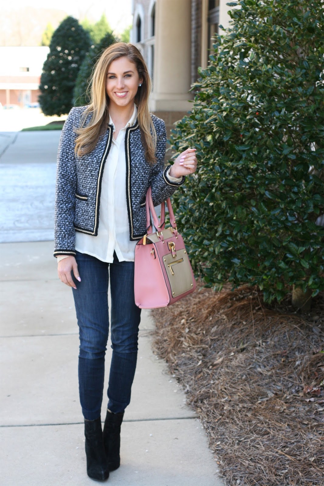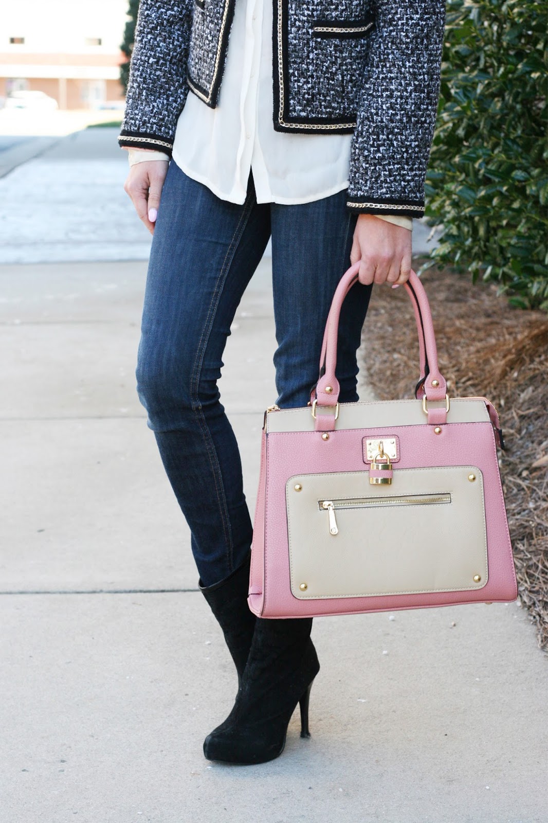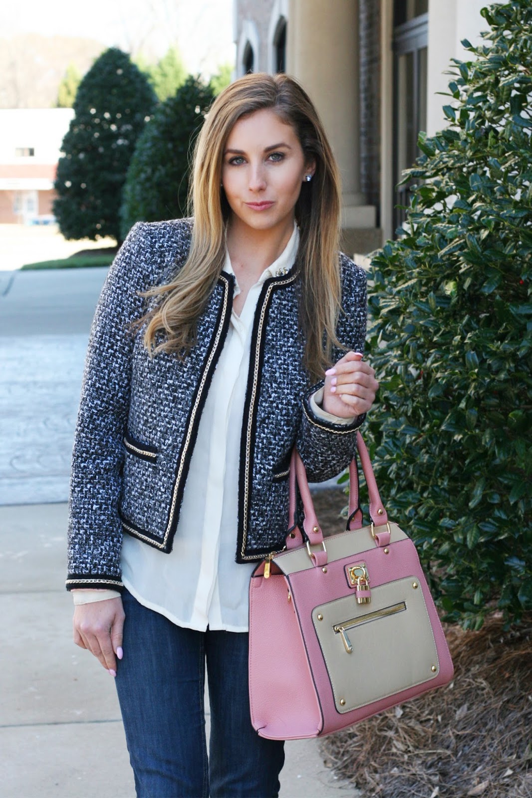 I can't decide whether I love the tweed jacket or that adorable purse better. I guess I need both (: