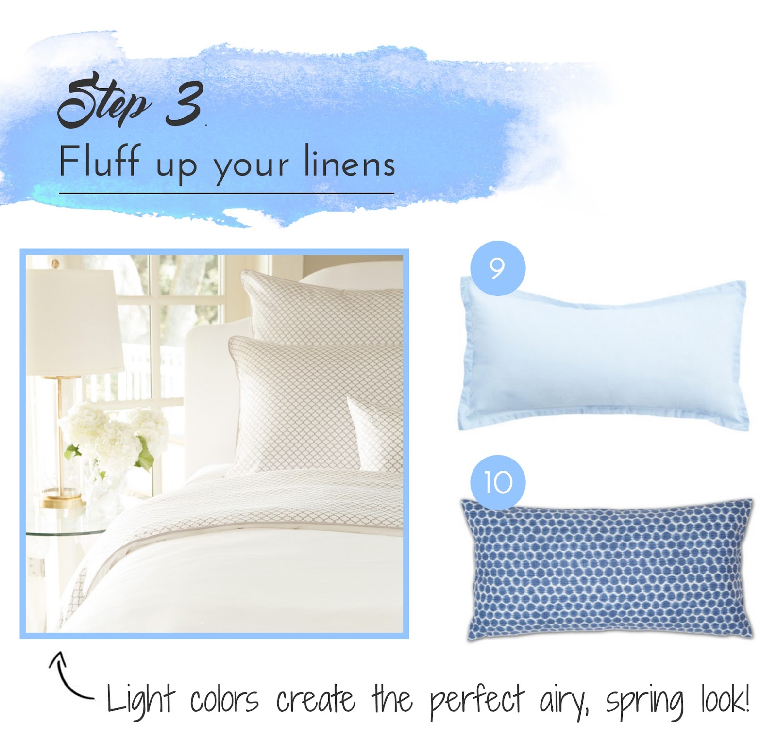 - Fluff up that bedding – Add some texture with a gorgeous new duvet cover and stack on a mix of accent pillows.