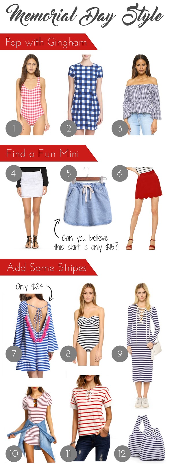 1. Nautical patterned swimsuit // 2. Gingham sheath dress // 3. Nautical off-the-shoulder top 4. White mini skirt // 5. Drawstring denim skirt 6. Red scalloped mini skirt // 7. Tassel back shift coverup // 8. Trendy one piece 9. Nautical bodycon dress // 10 . Striped knit shirt dress 11. Red stripe lace up tee // 12. Striped bag I'm the type of person that loves dressing the ...