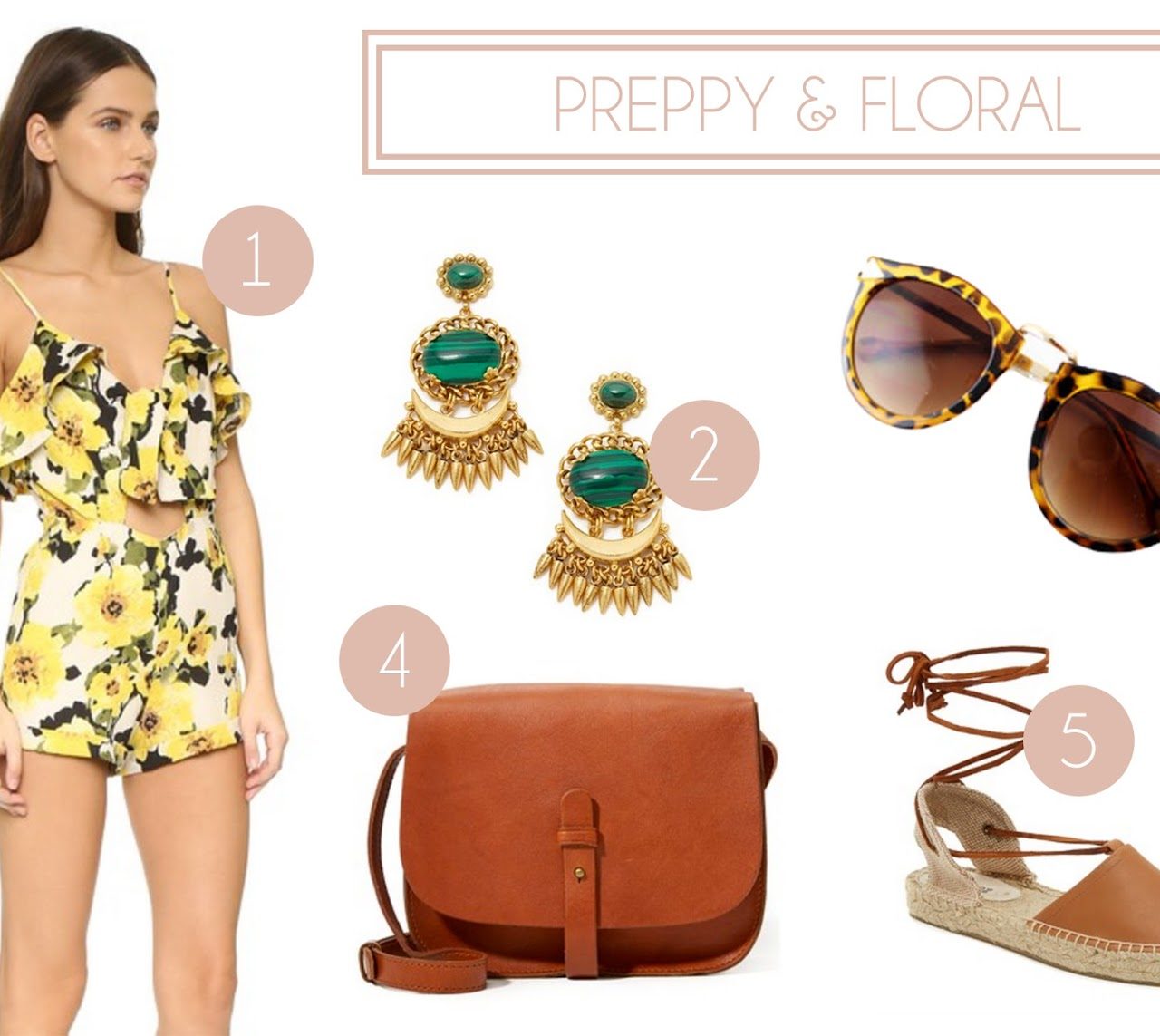 1. Floral romper // 2. Green statement earrings // 3. Tortoise sunglasses {$12} 4. Brown saddle bag // 5. Espadrille gladiator sandals It's that time of the year! You know, the time when everyone magically transforms into their inner flower child for the sake of music and fashion... It's time for Coachella! Maybe it's just me, and keep in mind I've never been, but it seems that Coachella ...